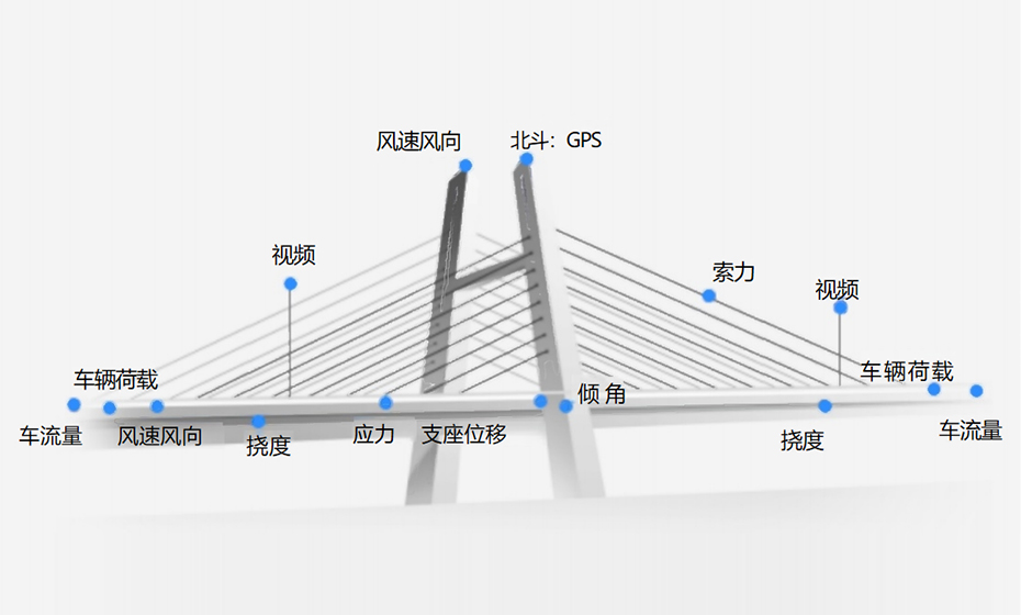 基于實時監(jiān)測和多模態(tài)數(shù)據(jù)的深度融合挖掘,結合橋梁定期檢測數(shù)據(jù)實現(xiàn)運營狀態(tài)的精準評估、長期性能演變規(guī)律預測和耐久性服役環(huán)境提升,依托平臺科學有效地開展預防性養(yǎng)護決策,對于突發(fā)事件在橋梁危害萌芽階段進行提前預警。