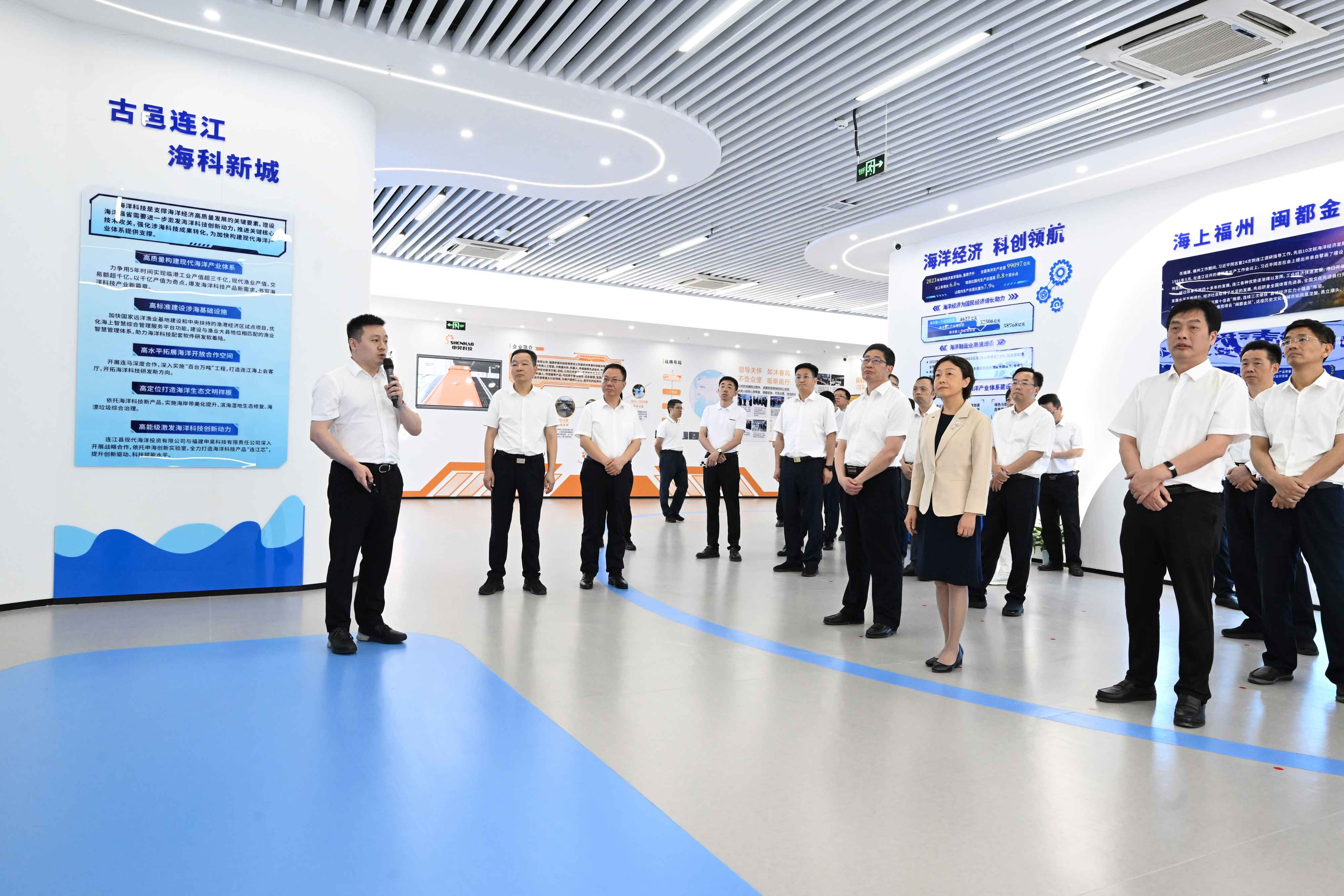 7月3日,福建省委常委、福州市委書記郭寧寧率領(lǐng)市四套班子和福州新區(qū)有關(guān)領(lǐng)導(dǎo)一行蒞臨連江縣開(kāi)展2024年全市重點(diǎn)項(xiàng)目建設(shè)“亮?xí)癖葘W(xué)”活動(dòng)。在此次活動(dòng)中,申海創(chuàng)新實(shí)驗(yàn)室作為重點(diǎn)考察項(xiàng)目之一,主要考察智慧海洋核心技術(shù)與產(chǎn)品研發(fā)、海洋新質(zhì)生產(chǎn)力培育等情況。申昊科技CTO、福建申昊公司董事長(zhǎng)、申海創(chuàng)新實(shí)驗(yàn)室負(fù)責(zé)人吳海騰向考察團(tuán)詳細(xì)匯報(bào)實(shí)驗(yàn)室發(fā)展情況與成果。