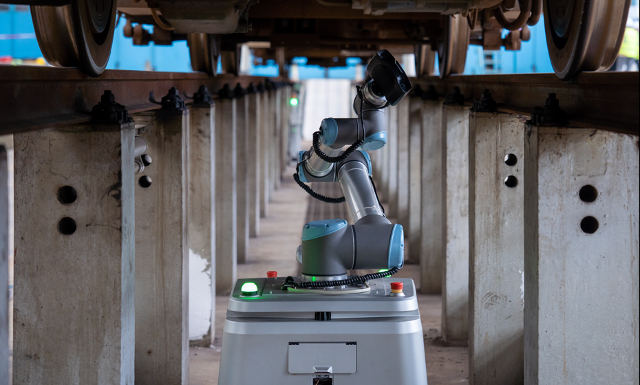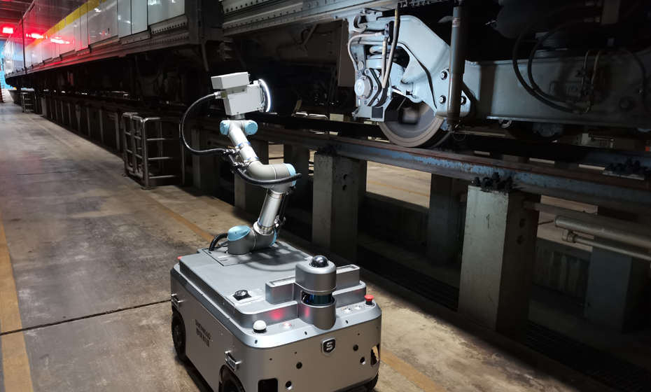 列車車底檢測(cè)機(jī)器人采用輪式運(yùn)動(dòng)平臺(tái)組合機(jī)械臂、視覺系統(tǒng)的方式,運(yùn)行于列車檢修地溝中,代替人工完成列車車底、車側(cè)外觀的檢測(cè)任務(wù),解決傳統(tǒng)人工檢測(cè)遇到的現(xiàn)場(chǎng)環(huán)境艱苦、勞動(dòng)強(qiáng)度大、受人員主觀因素影響等問題,從而降低檢修人員工作強(qiáng)度、提升檢修質(zhì)量,及時(shí)全面消除列車運(yùn)行安全隱患。